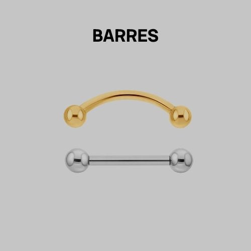 Nous proposons également des modèles en titane gold (PVD), offrant une finition dorée durable et adaptée au piercing.