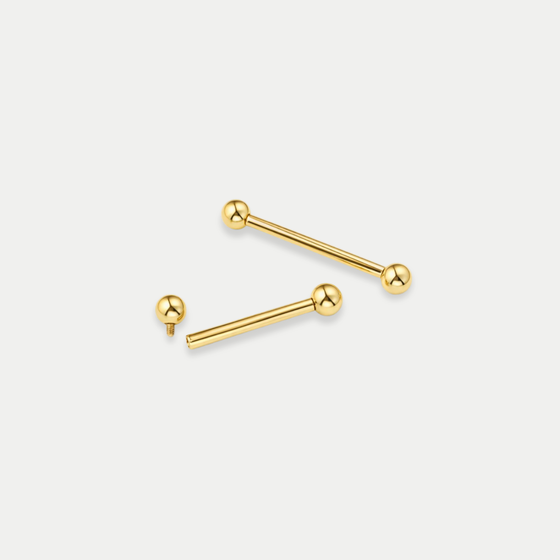 Barre droite en titane ASTM F-136 avec finition PVD Gold, conçue pour accueillir un embout vissé de chaque côté.