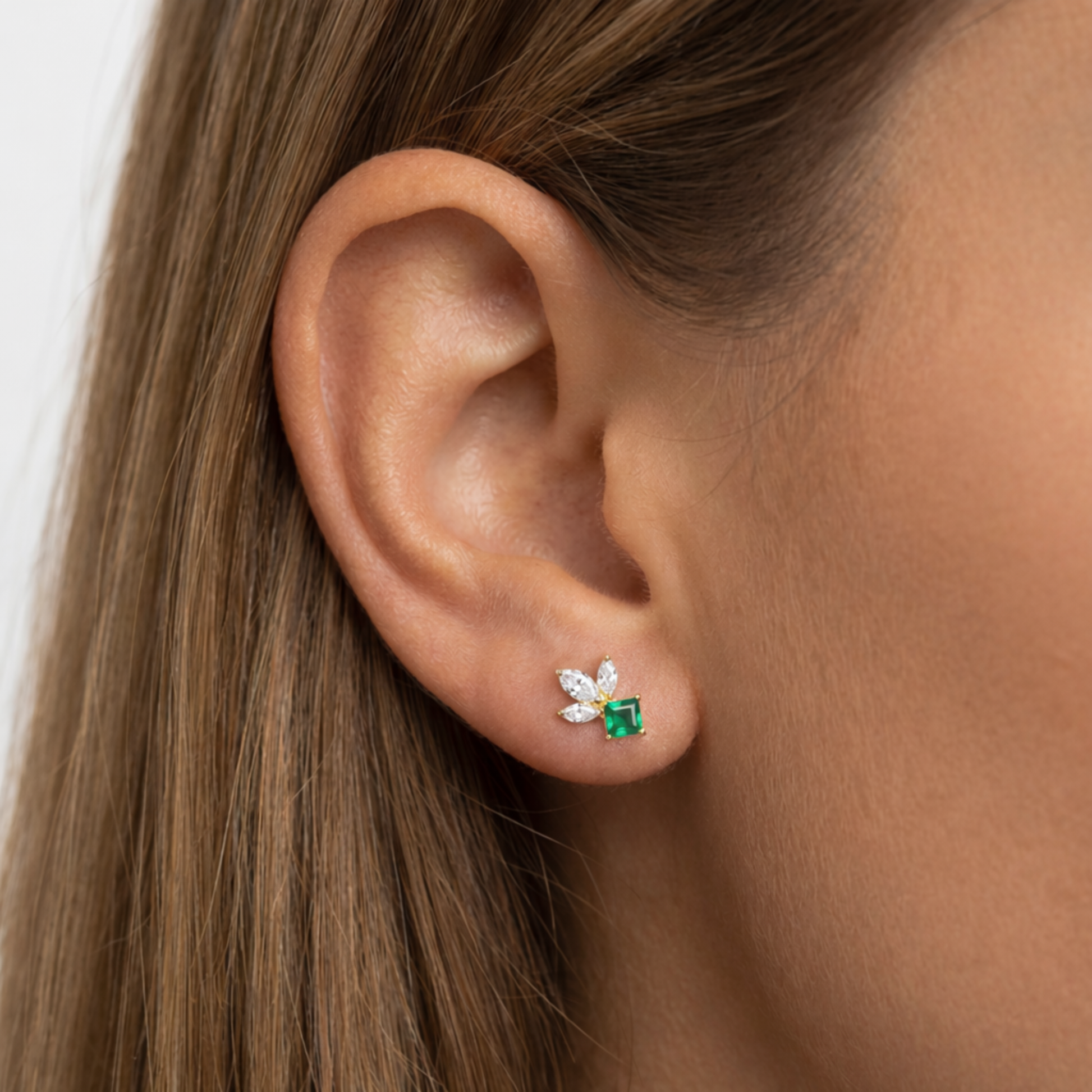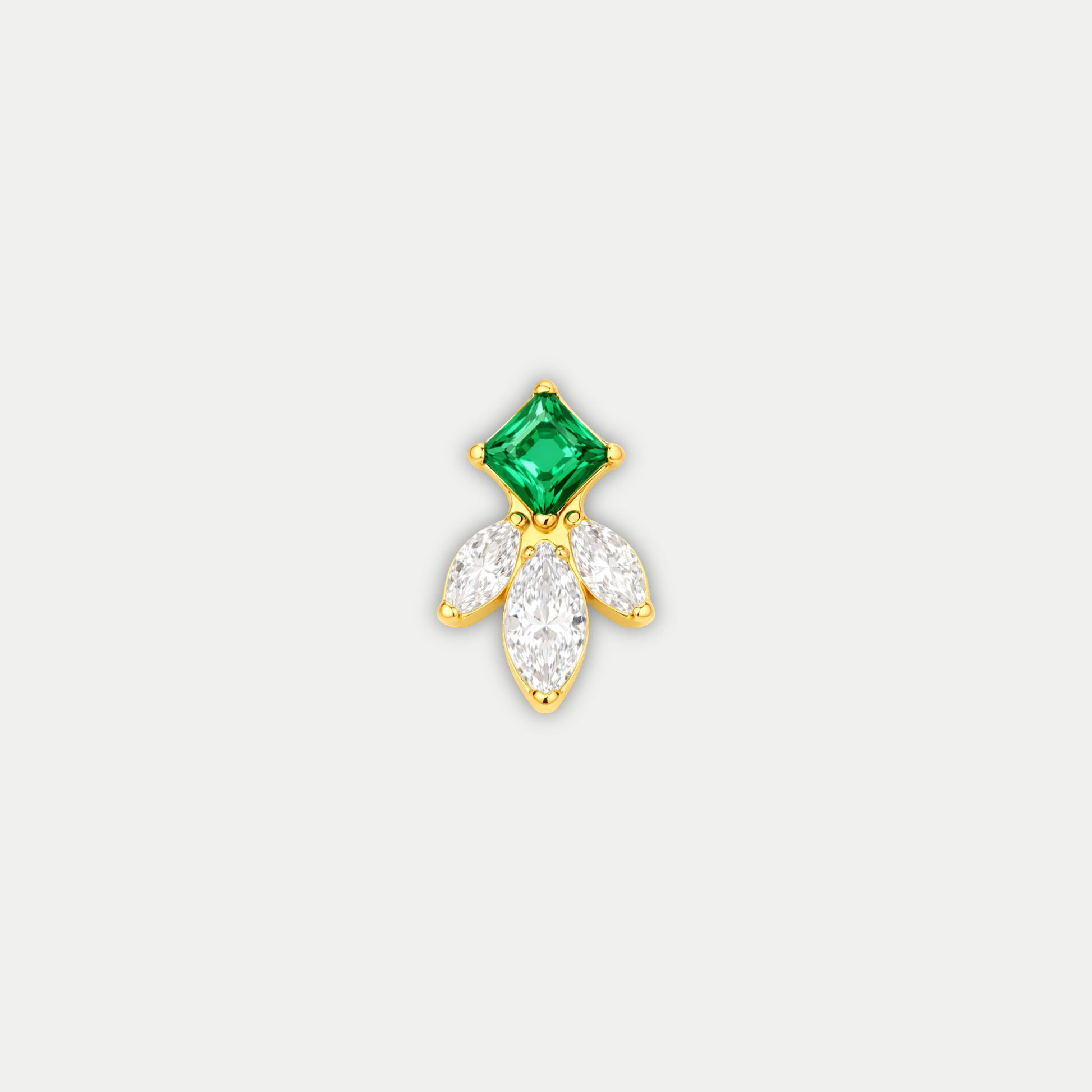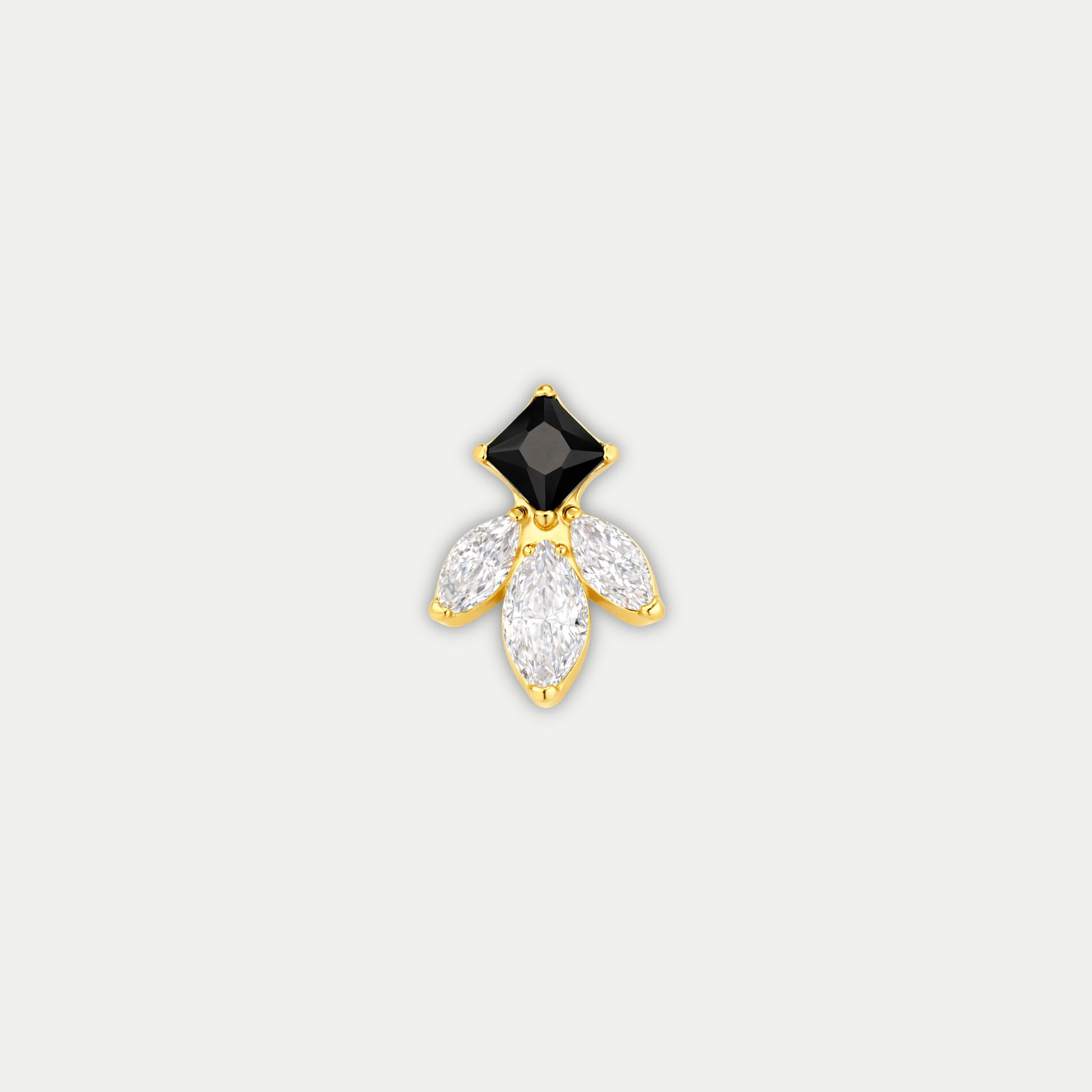 Embout Cléo est un embout en titane ASTM F136 avec finition PVD Gold, composé d’un zircon carré associé à trois zircons taille marquise pour un rendu structuré et lumineux.