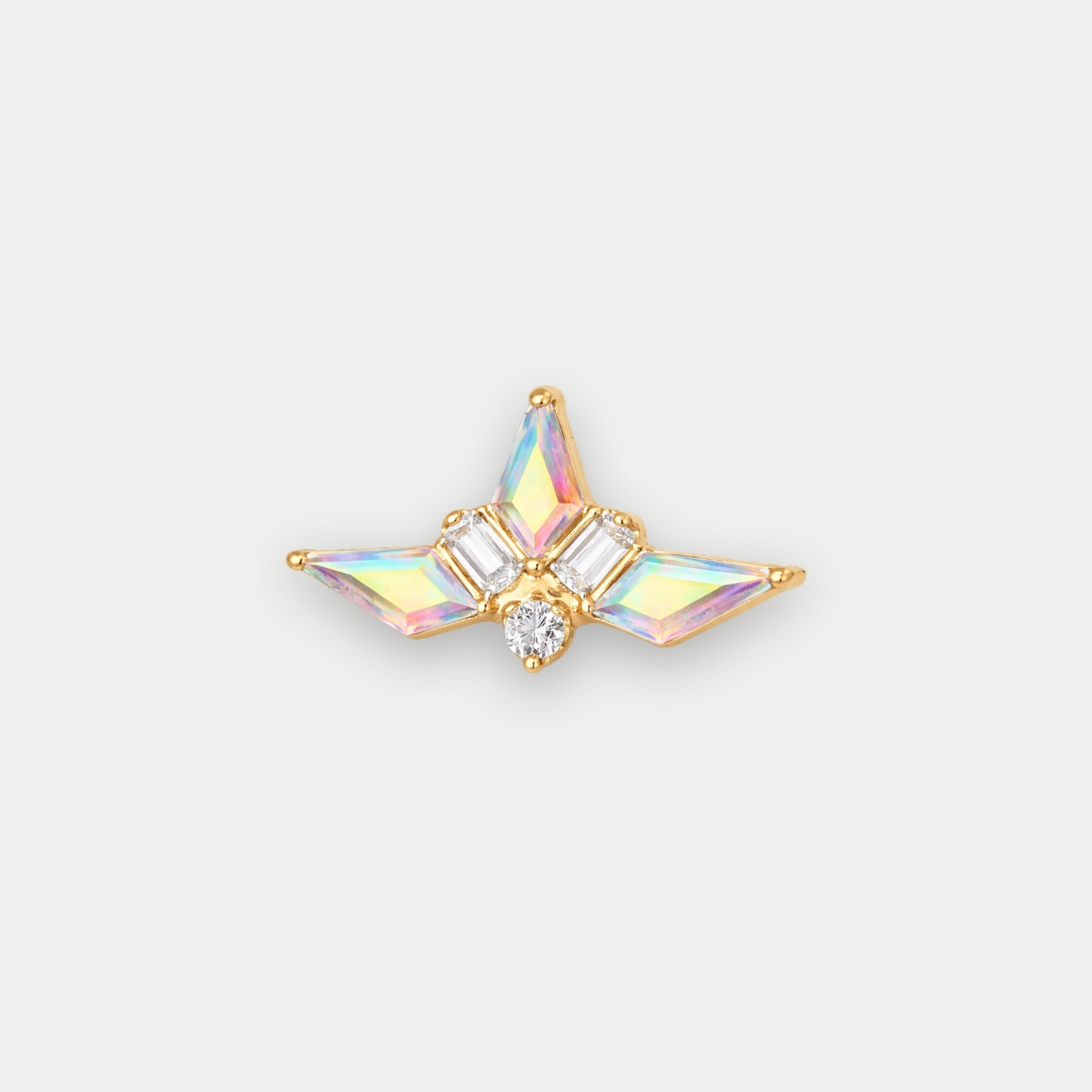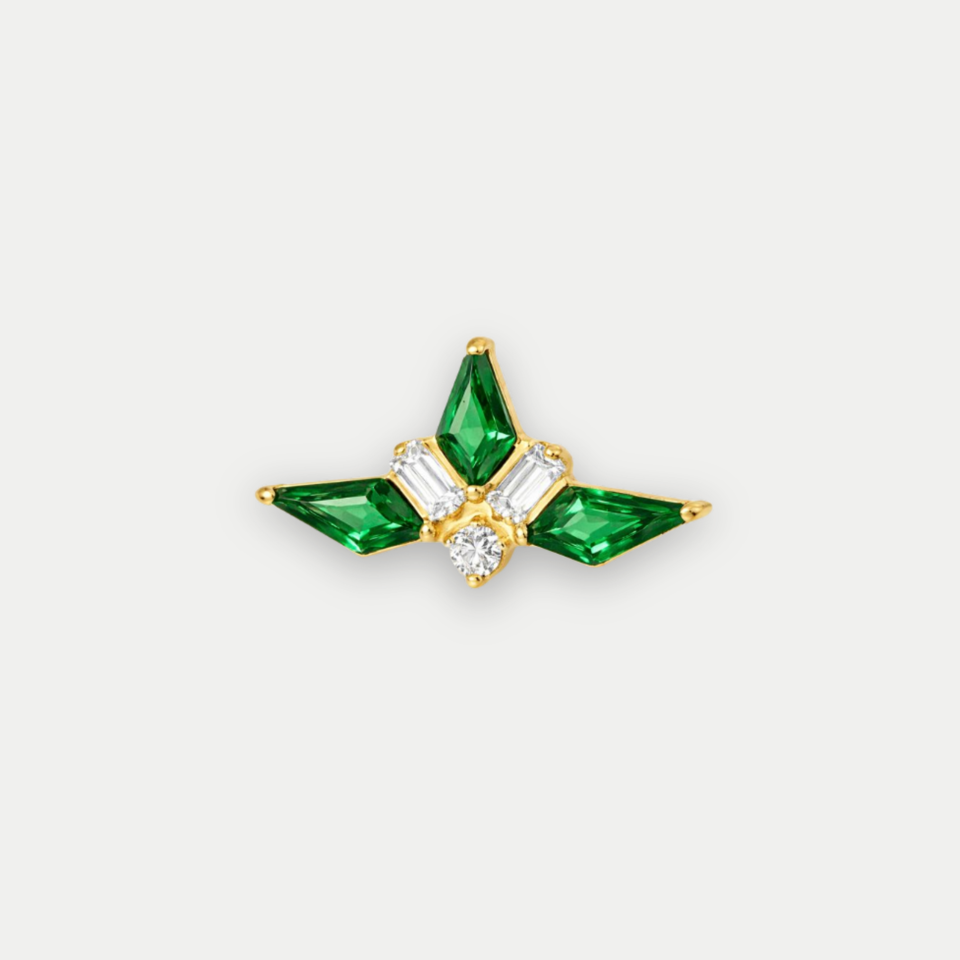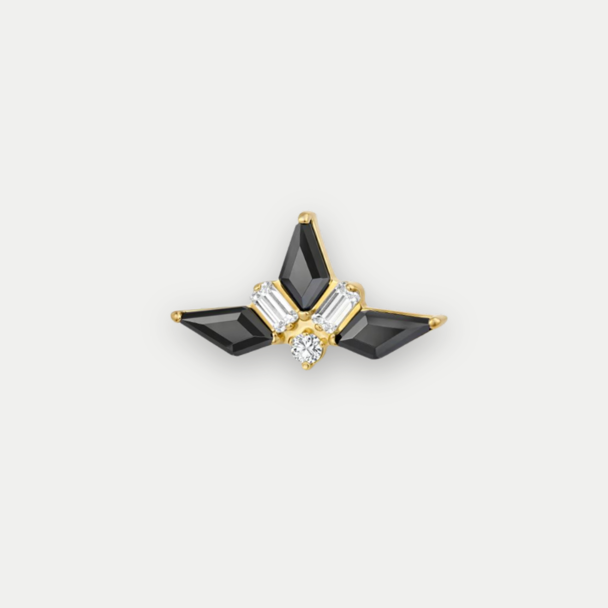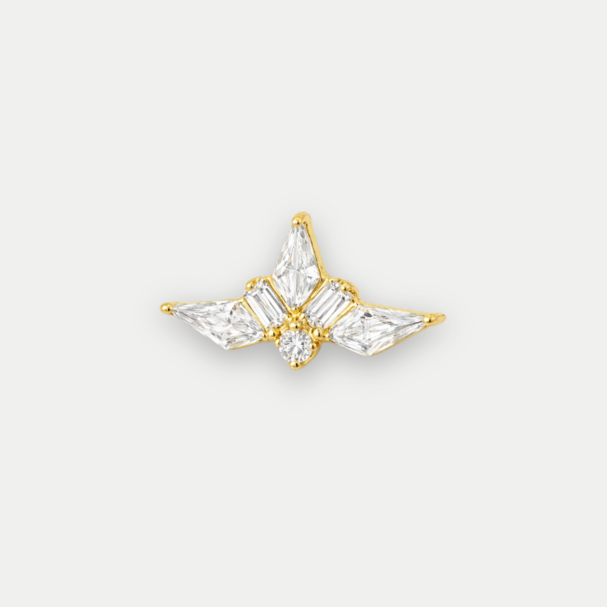Embout Hortense est un embout en titane ASTM F136 avec finition PVD Gold, orné de zircons taille diamant disposés en éventail pour un rendu graphique et lumineux.
