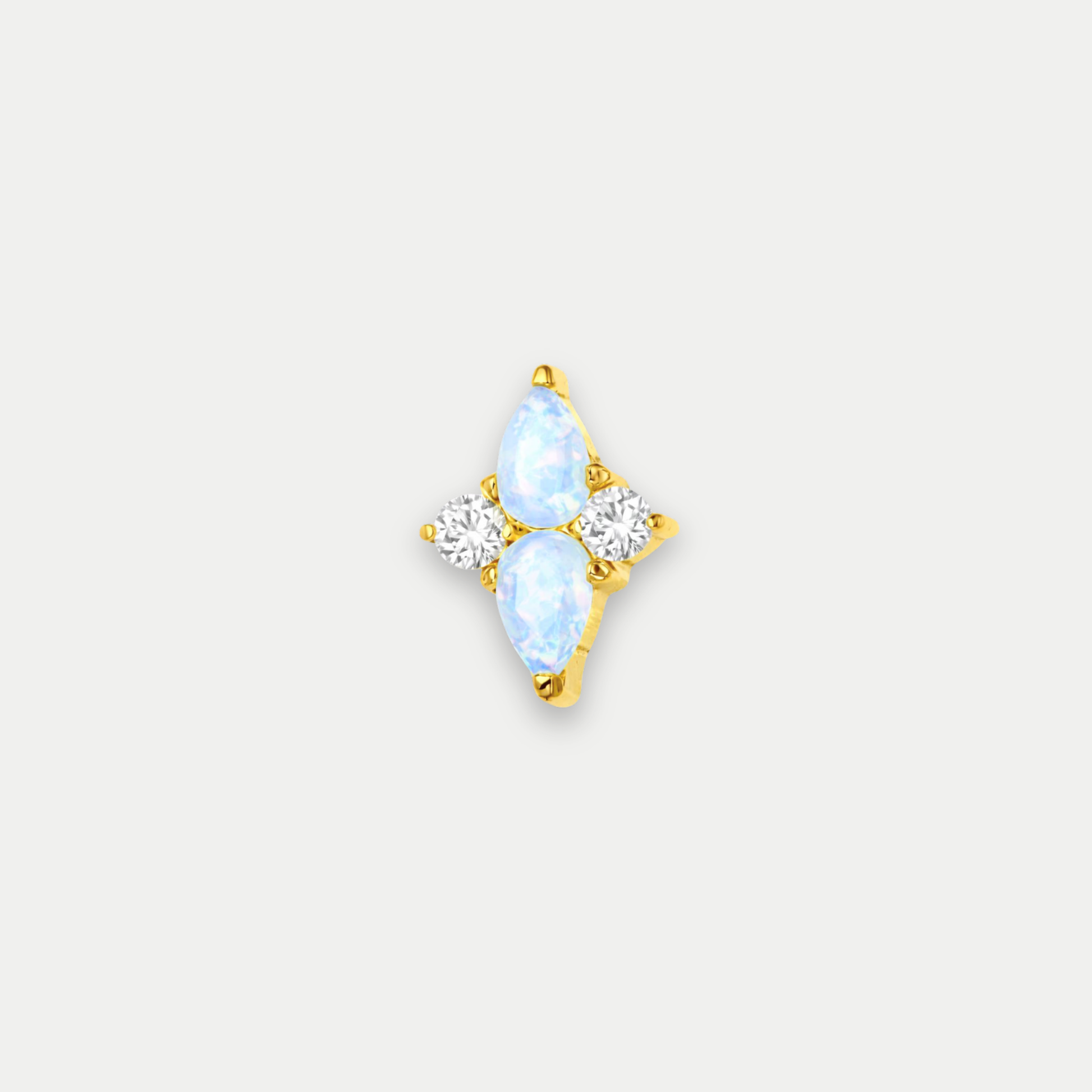 Embout Orya est un embout en titane ASTM F136 avec finition PVD Gold, orné d’opalites allongées associées à des zircons premium pour un rendu lumineux, élégant et parfaitement équilibré.